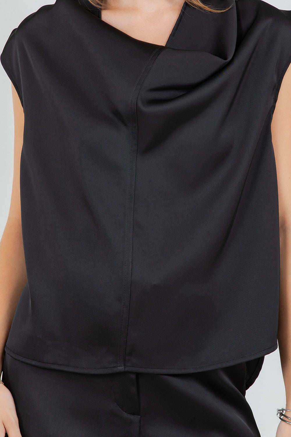 Cowl neck satin top.