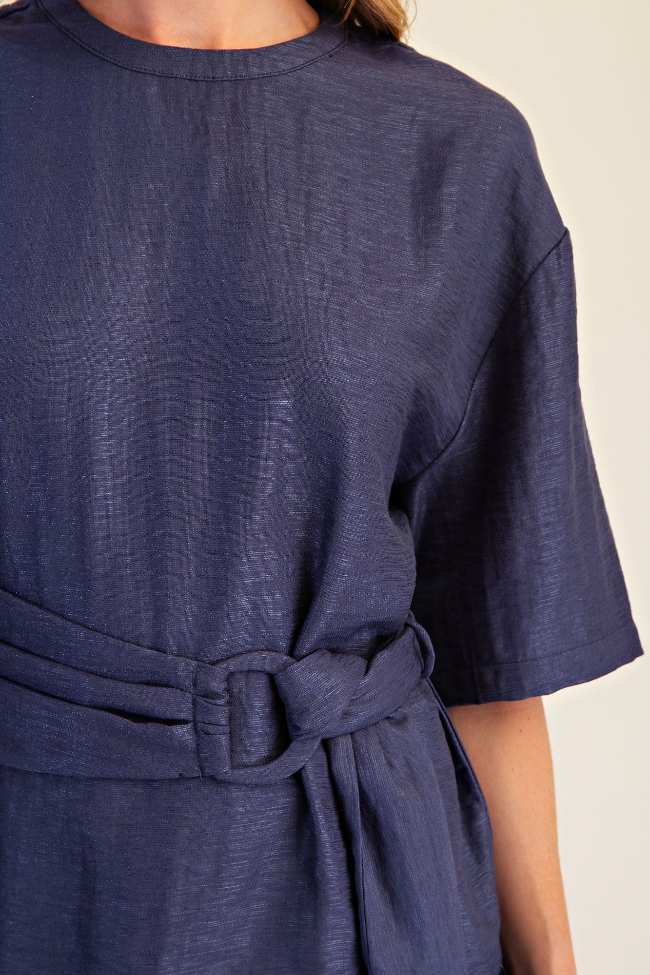 Round neck waist belt tie top.