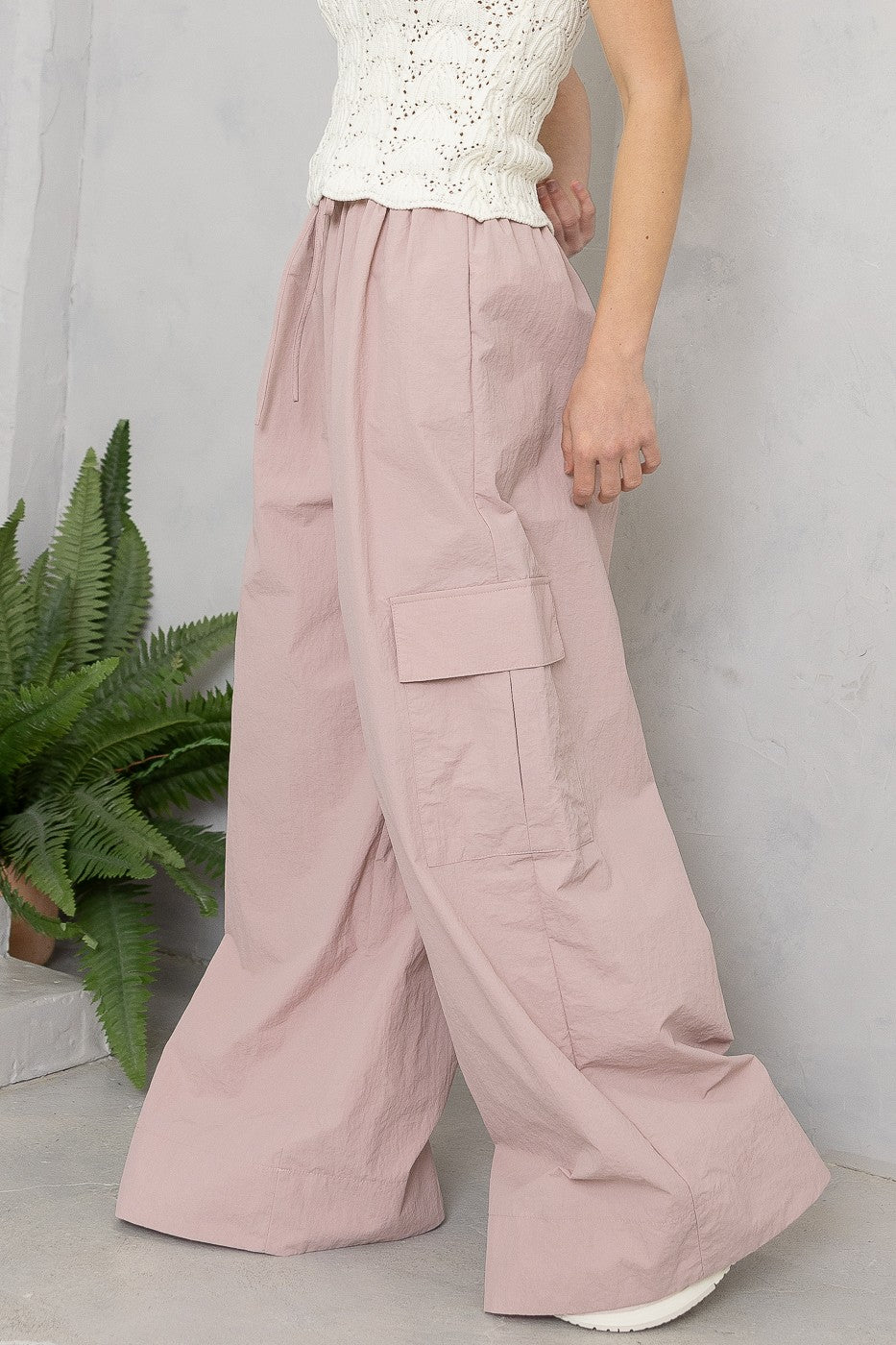 Patch pocket wide leg cargo pants.