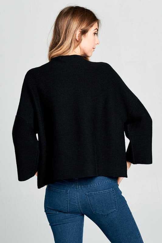 Oversized ribbed mock neck top.