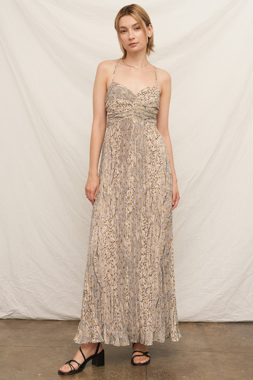 Sleeveless cut out tie back maxi dress.