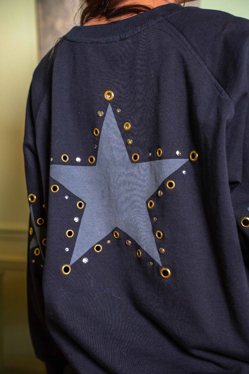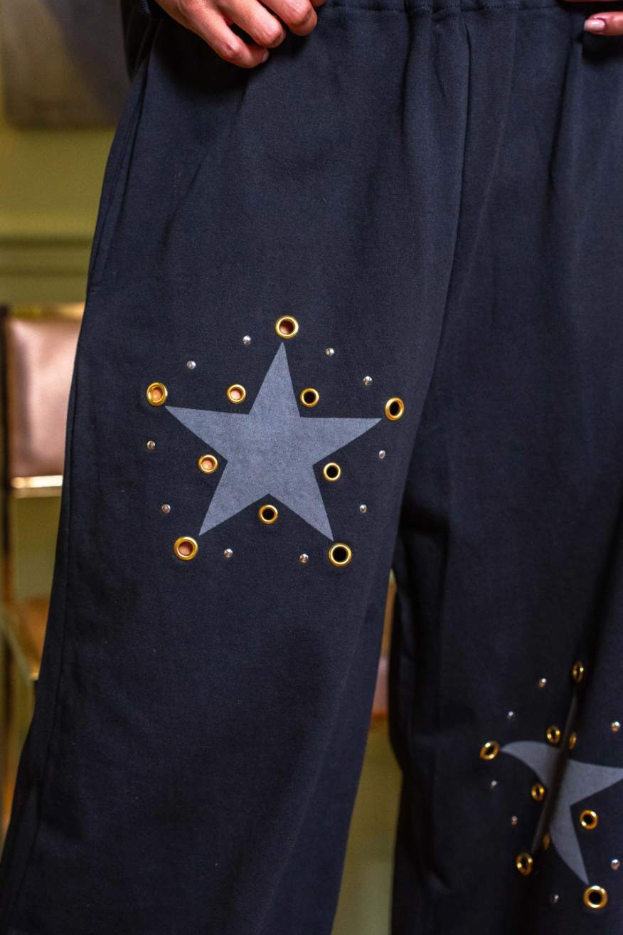 Start studded sweatshirt with matching pant set.
