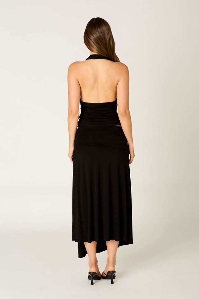 Deep V neck halter ruched top.